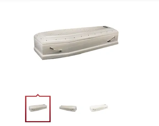 Любители гламура также могут приобрести шестигранный гроб из вишнёвого дерева с оригинальными австрийскими кристаллами Сваровски. В описании товара отмечается, что он предназначен для «ушедшей из жизни неординарной личности», а оригинальный цвет гроба придёт ему «необыкновенно торжественный и благородный вид». Кроме этого, уточняется, что в комплект входят ручки и бархатная постель, а страна-поставщик — Италия.