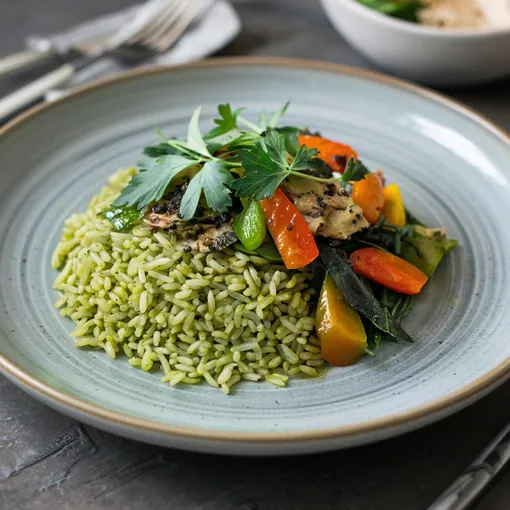 Приготовить зелёный рис на самом деле легко. Чтобы придать крупе нужный цвет, понадобится свежая зелень, такая как петрушка, укроп, кинза, шпинат или базилик. Белый рис можно варить вместе с мелко нарезанными травами или добавить их непосредственно перед подачей блюда.