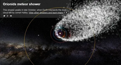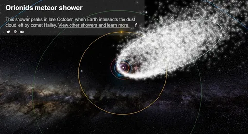 Поток Орионид обязан своим происхождением известной комете Галлея, прошедшей мимо Земли последний раз в 1986 году, она вернётся снова лишь в 2061-м. Помимо Орионид, эта же комета порождает ещё один знаменитый весенний метеорный дождь — Эта-Аквариды, приходящийся на начало мая.