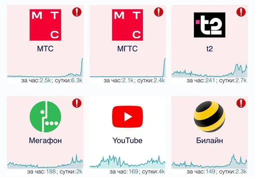 Согласно данным порталов, отслеживающих технические сбои, только за один час поступило свыше 6 тысяч обращений. В основном абоненты жалуются на полное отсутствие доступа к услугам связи, такие жалобы составляют более 90% от общего числа. Также отмечаются неполадки в работе мобильных приложений, сайтов и личных кабинетов операторов.
