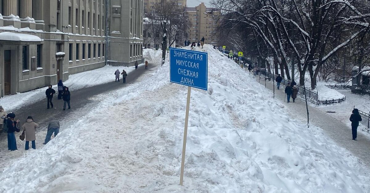 Аномальное количество снега в Москве возродило местную достопримечательность — «Миусскую дюну». Так горожане назвали огромную кучу снега, образовавшуюся в середине января 2026 года на Миусской площади столицы, между станциями метро «Белорусская», «Новослободская» и «Менделеевская». 9 января в регионе выпало до 40% месячной нормы осадков. К утру следующего дня высота снежного покрова в центре Москвы достигла 39 сантиметров, или полторы нормы.
