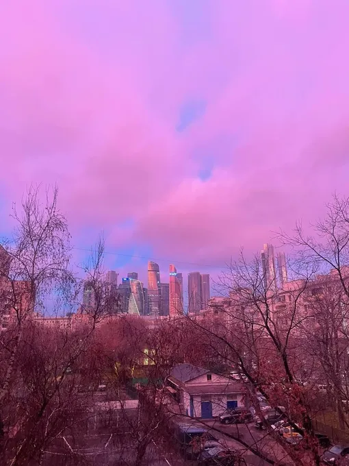 Москву осветил редкий пурпурный рассвет: горожане сняли впечатляющее атмосферное явление