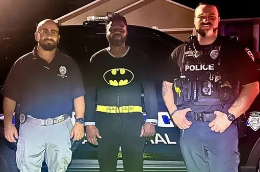 «Мужчина в пижаме Бэтмена помог задержать подозреваемого в краже со взломом», — гласила подпись к фотографии с изображением героя в компании офицеров, опубликованной в аккаунте департамента.