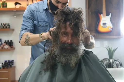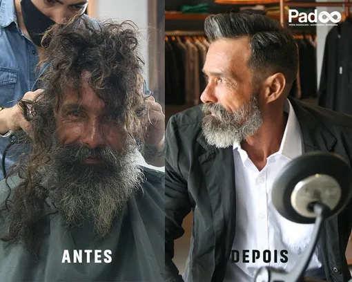 Такая просьба удивила Алессандро, и он решил сделать для бродяги больше. Выяснилось, что мужчину зовут Жоао Коэльо Гимарайнш. Лобо ответ его в свою парикмахерскую-барбершоп, а также дал новую одежду.
