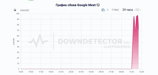 Очередной сбой зафиксировал сайт Downdetector. В этом раз массовые жалобы от российских пользователей поступают на работу сервис Google Meet, многие не могут зайти на сайт для проведения видеозвонков и видеовстреч. За последние 24 часа на общий сбой пожаловались 43% россиян, а на сбой сайта — 30%. Не работает мобильное приложение у 21%, а ещё 4% сообщают, что не приходят оповещения.