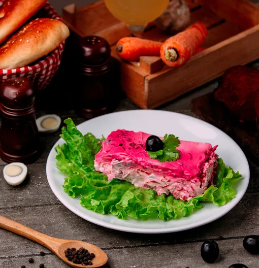 Тройку лидеров замыкает «Селедка под шубой» с ценой 291 рубль за четыре порции. В составе — сельдь (350 г), яйца (2 шт.), картофель (400 г), свекла (300 г), морковь (200 г), лук (100 г) и майонез (300 г).