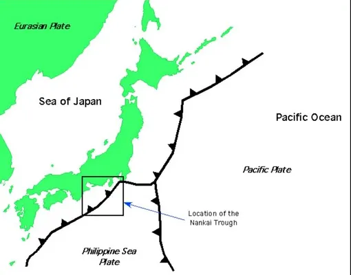 Нанкайский жёлоб представляет собой подводную впадину длиной 805 км, пролегающую параллельно тихоокеанскому побережью Японии, где одна тектоническая плита медленно скользит под другую. За последние 1400 лет сильнейшие подземные толчки в Нанкайском желобе фиксировались каждые 100–200 лет. Последнее мегаземлетрясение там было в 1946 году.