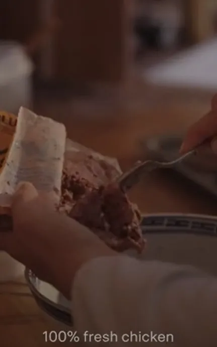 На первый взгляд подобный фаст-фуд вызывает настороженность. Однако если вчитаться в рецепт, то звучит он весьма аппетитно. Сначала формируется котлета из 100% мяса цыплят, которым кормят кошек, затем её обваливают в панировочных сухарях, покрывают сливочным сыром рикотта, пармезаном, лимонным соусом и копчёным беконом.