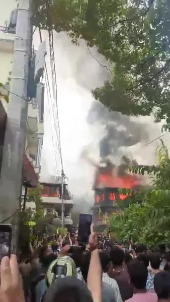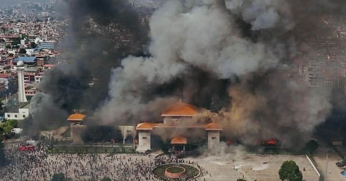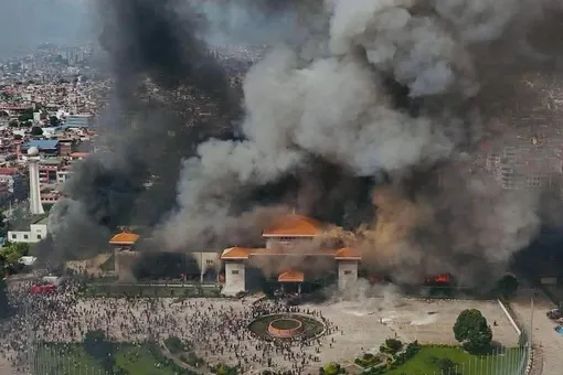 Протесты начались после временного запрета на работу крупнейших социальных сетей — Facebook*, Instagram*, WhatsApp* и YouTube, который был отменён позднее, однако волнения не прекратились. Демонстранты требуют смены власти, поджигают дома чиновников и значимые здания. В небе летают военные вертолёты, которые пытаются разогнать толпу водяными струями.