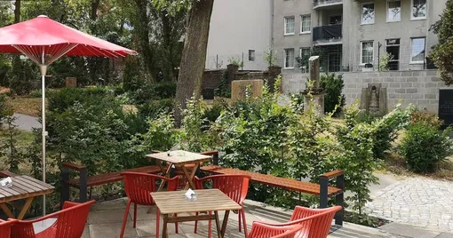 Первая подобная кофейня открылась ещё в 2006 году на берлинском католическом кладбище St. Matthias, где находится могила братьев Гримм. Впрочем, там имеются строгие ограничения на размещение рекламы и проведение шумных мероприятий.