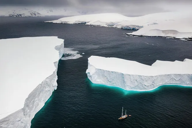«Ледяной корабль, если его можно так назвать, — это 122-метровая яхта, которая покоится у берегов Антарктиды. Ты смотришь на него сверху вниз, и он выглядит как очертания корабля», — заявляет автор.