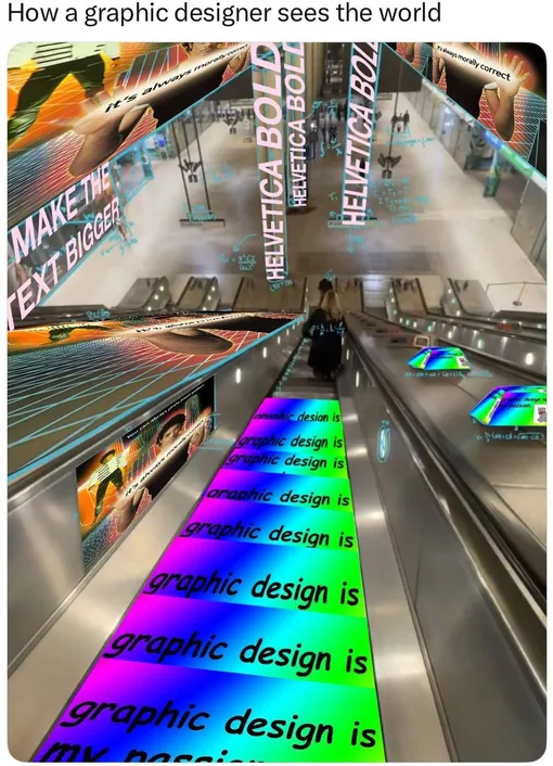 Так, филолог разместил на фоне эскалатора алфавит, графический дизайнер «напоминалку» увеличить текст и поменять шрифт.