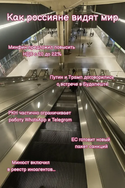 Один из них поделился фото эскалатора, идущего вверх в облака. «Так видят мир российские топ-менеджеры», — гласила подпись. А как видите метро вы?