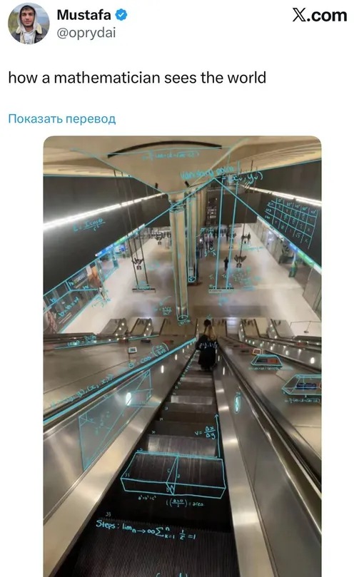 Первоначально идея появилась благодаря посту на одной из платформ, где пользователь разместил фотографию эскалатора с нарисованными поверх него уравнениями.