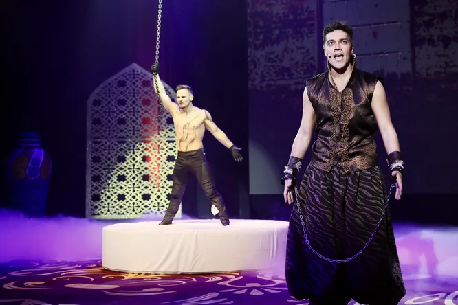 «РомановАрена» – флагман мультижанровых шоу. Артистам коллектива удалось рассказать знакомую с детства историю храброго Аладдина, Джинна и принцессы Будур на языке современного искусства.