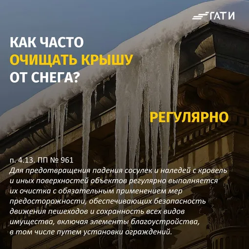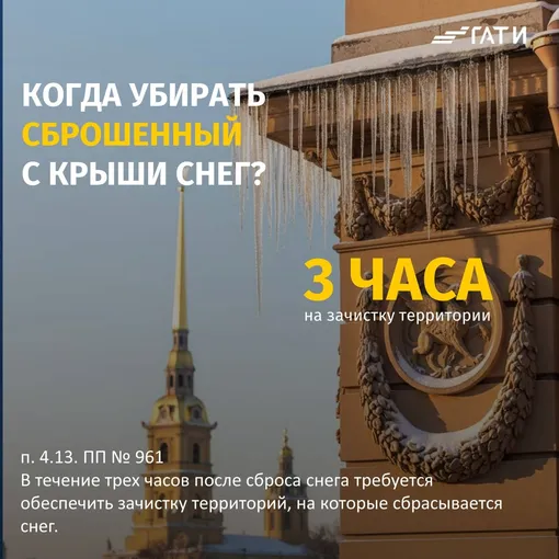 Штрафы за несвоевременную очистку от снега крыш были выписаны 21 владельцу или ответственным за содержание нежилых домов на общую сумму 2,1 миллиона рублей. В ГАТИ напомнили, что кровли необходимо очищать сразу же после того, как прошёл снегопад, чтобы предотвратить образование сосулек. Далее, в течение трёх часов сброшенный снег нужно убрать с территории, собрать и вывезти в течение 24 часов.