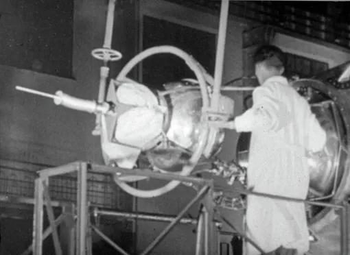 В спутнике – четырехметровом цилиндре – для нее сделали капсулу размером с посудомоечную машину. Устройство для химической регенерации воздуха было рассчитано на неделю; два раза в сутки автоматически открывался контейнер – в него подавалась жидкая космическая собачья еда. Лайка отправлялась в полет в комбинезоне, который крепился к капсуле тросиками. Она могла лежать, сидеть, стоять и на несколько сантиметров двигаться вперед и назад.