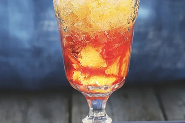 4.Разлейте в бокалы поверх кусочков апельсина апельсиновый ликер (например, Кампари), выложите граниту и сразу же подавайте на стол.