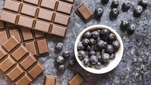 Этот дуэт удовлетворит вашу потребность в сладком и одновременно насытит организм антиоксидантами и витаминами. Для приготовления достаточно растопить темную шоколадную стружку в миске и добавить туда сушеную чернику. Затем охладите смесь на пергаментной бумаге.