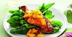 4. Подавайте, выложив стейки на листья шпината и гарнировав их кусочками ананаса. Полейте листья и стейки соусом.