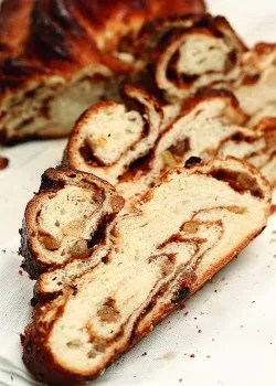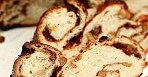 4. Разогейте духовку до 200 °C. Выложите рулет на противень, выстланный бумагой для выпечки, дайте подойти 15 минут. Смажьте верх плетенки желтком, смешанным с молоком, и выпекайте 30−40 минут.