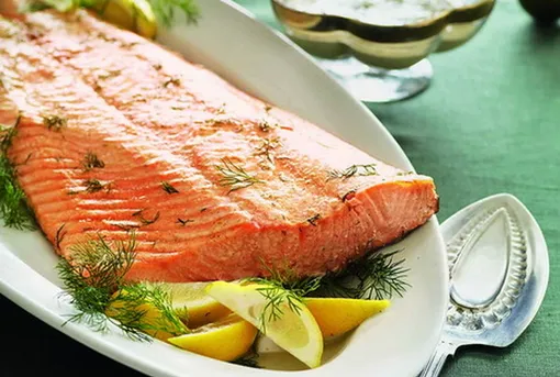Предлагаем выбрать для праздничного стола рыбу лососевых пород — семгу, форель, кижуча или нерку. Красная рыба готовится достаточно быстро, поэтому важно не пересушить ее в духовке. Важную роль играют соусы — попробуйте лосось в горчичной глазури. Можно приготовить филе краной рыбы в тесте — так она сохранит сочность, а блюдо будет выглядеть очень празднично. Масло с приправами, которое используется в рецепте превращает это блюдо в кулинарный шедевр.