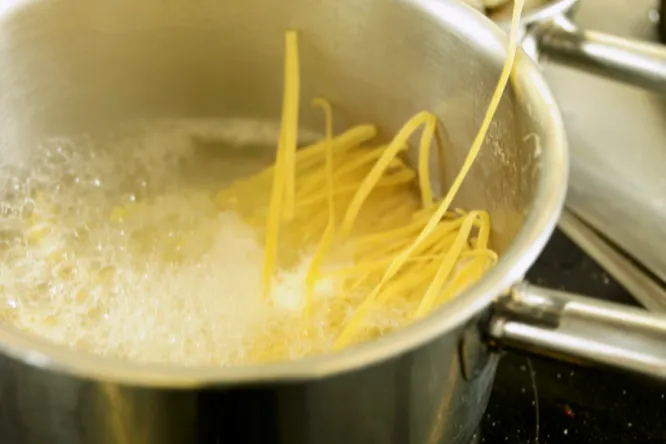 Макароны должны вариться в хорошо посоленной воде, иначе их вкус будет слишком пресным и невыразительным. Опыты показали, что независимо от того, сколько вы соли насыпали, макароны впитывают всегда ограниченное количество соли и не больше.