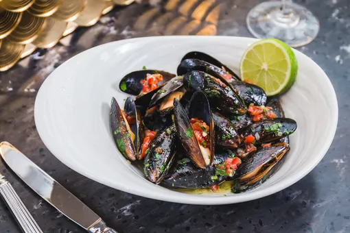 Мидии беломорские в белом вине
