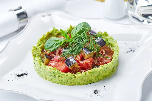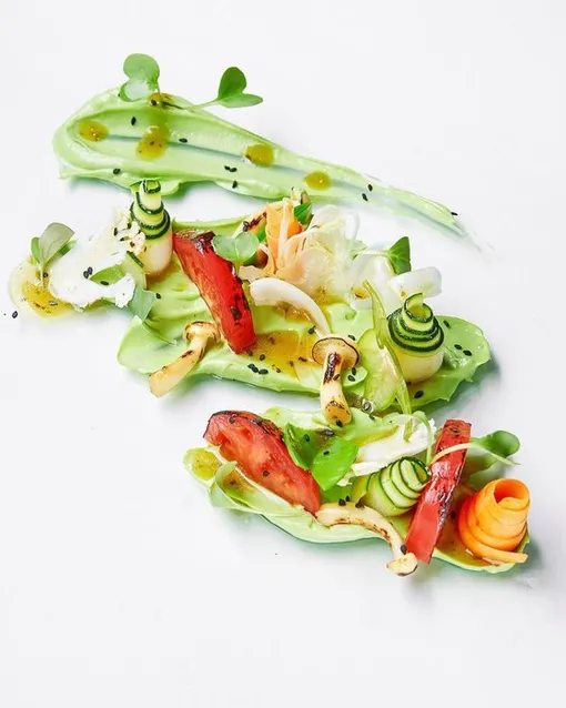 Овощной салат с пюре из авокадо