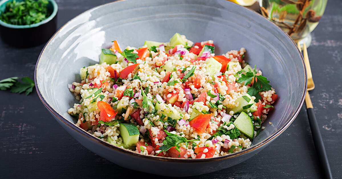 Этот салат — просто витаминная бомба! Свежая зелень, ароматный огурец, сладкая редиска, правильно приготовленным кускус и ароматная рыбка холодного копчения делает этот салат невероятно свежим и безумно вкусным. Рецепты не менее вкусных и интересных салатов, вы найдете на странице любимого нами шеф-повара Василия Емельяненко.