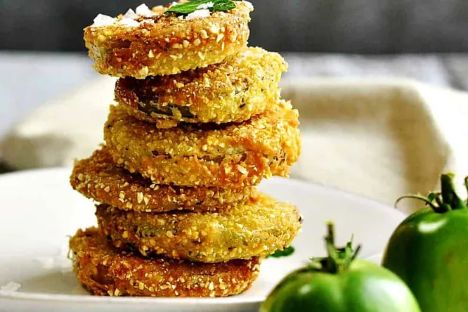 Жареные в панировке зеленые помидоры. Фото: pinchandswirl.com