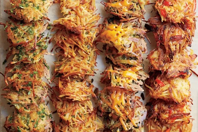 Печеные драники. Выложите картофельную смесь небольшими горками на смазанный растительным маслом противень и готовьте в разогретой до 200 С духовке около 10 минут — до получения аппетитной золотистой корочки. В качестве добавок к картофельной смеси можно добавлять любые специи, сыр, ветчину, острый или сладкий мелко нарезанный перец.