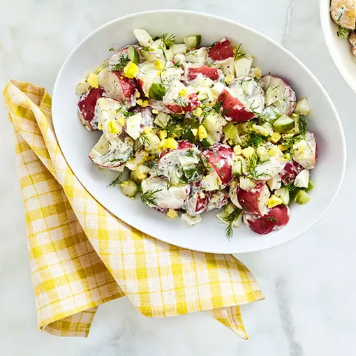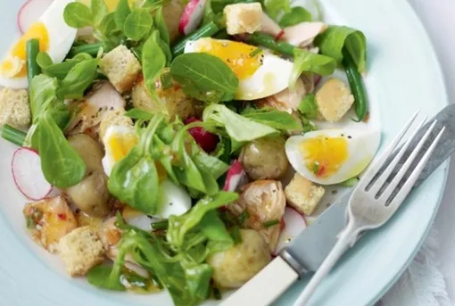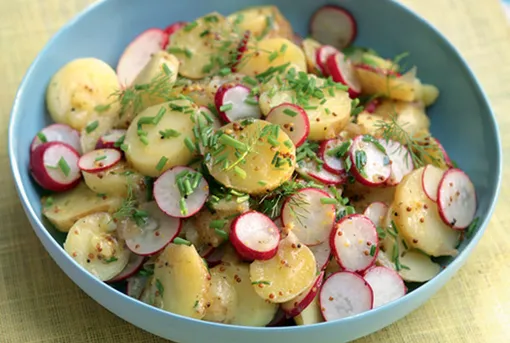 Настоящее весеннее блюдо, которое может послужить также отличным гарниром к запеченной рыбе или мясу на гриле. Берите этот салат с картофелем на вооружение для весенних пикников!