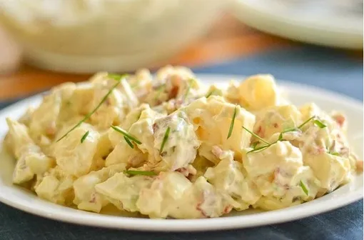 Смешайте 5 штук отварного картофеля с ¼ стакана нарезанного зеленого лука и ¼ стакана нарезанного свежего укропа, добавьте натертую цедру одного лимона. Для заправки смешайте 2 ч.л. дижонской горчицы и 0,5 ст. майонеза.