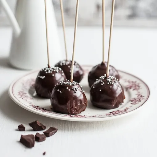 Для глазури растопите на водяной бане шоколад. Окуните деревянные или пластиковые палочки в шоколад, затем вставьте в кейк-попсы, протыкая их наполовину. Поставьте в холодильник еще на 20 минут.