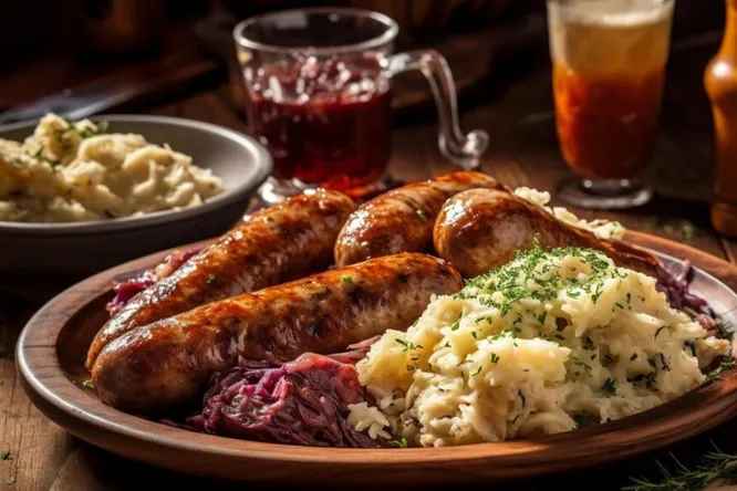Любимое блюдо жителей Мюнхена — сауркраут с сосисками. Переводится это название просто — кислая капуста. Отличие ее от привычной квашеной в том, что ее могут подавать как в холодном, так и горячем виде. Именно о последней вариации и пойдет речь. Готовится она просто и быстро — ждать, пока она настоится две недели, не понадобится.