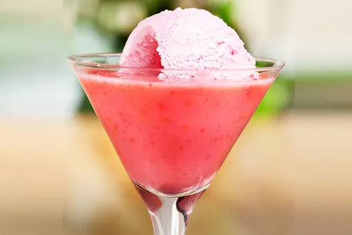 1. Перед тем как сделать коктейль из клубники, выложите заранее мороженое из морозильной камеры, чтобы оно немного подтаяло при комнатной температуре.