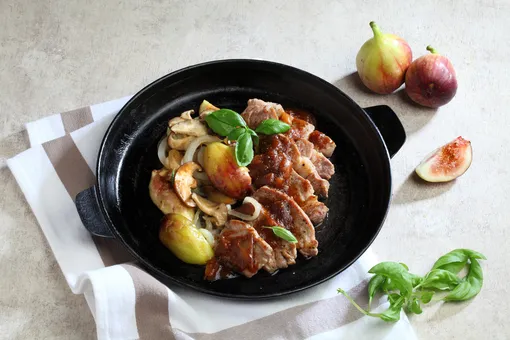 Утиная грудка с белыми грибами и корнем петрушки