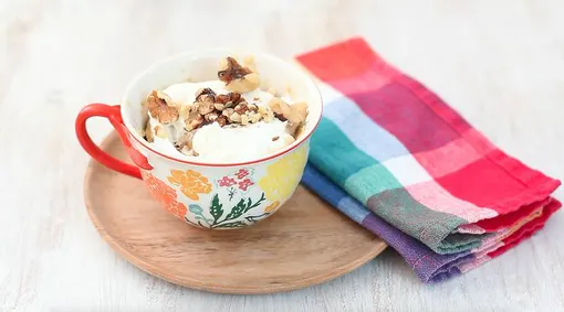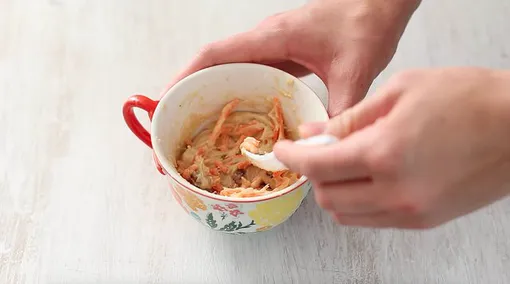 Поставьте чашку в микроволновку на максимальный режим на 45 секунд. Проверьте, пропекся ли центр морковного кекса зубочисткой.