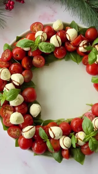 Праздничная подача: как превратить салат с черри и моцареллой в съедобный новогодний венок