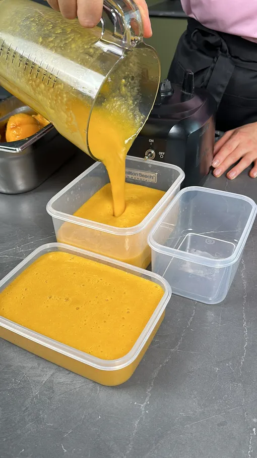 Пробить персики в блендере, протереть через сито.