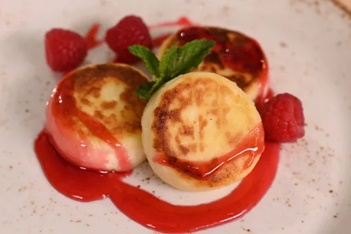 Сырные сырники с малиновым соусом: рецепт от шеф-повара