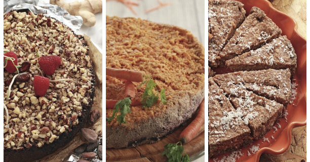 Для начинки очищенную морковь поделитьна 2 части. Одну часть натереть на мелуой терке, вторую часть блендировать с кешью, медом, специями и соком лимона. Выложить на корж, разровнять и охладить. При подаче украсить свежей тертой морковью.