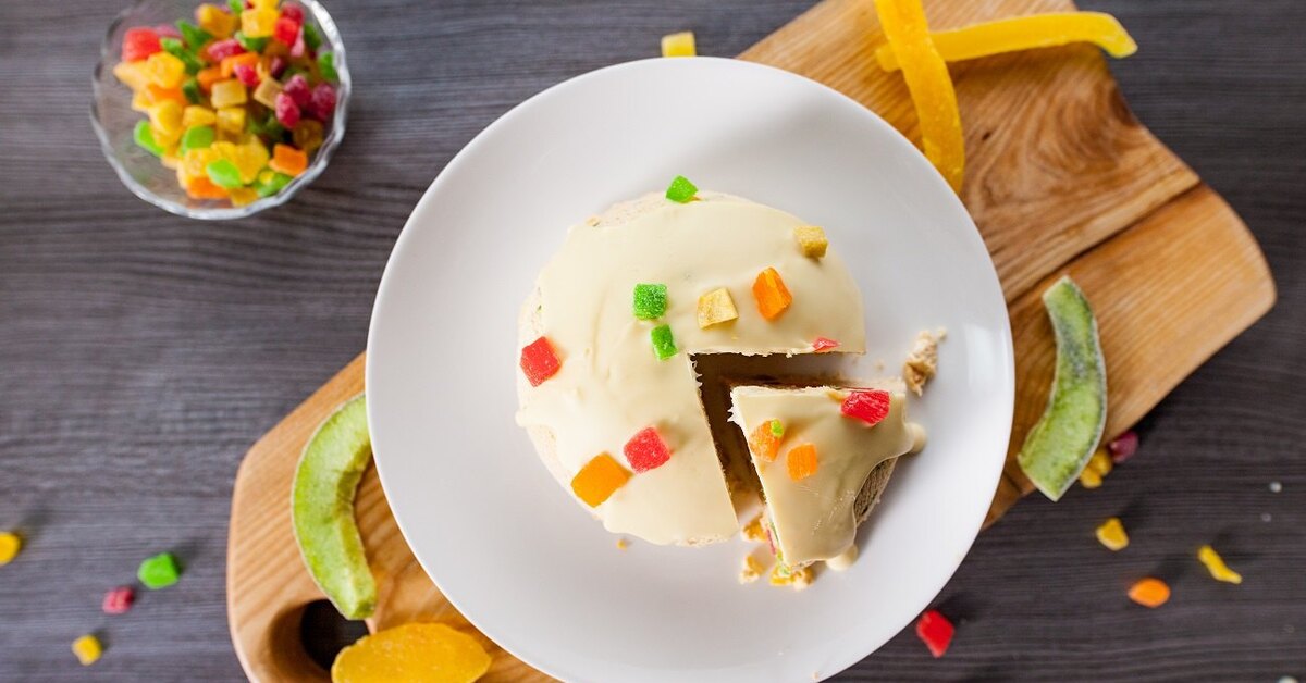 Полить пасху белым шоколадом и посыпать цукатами.