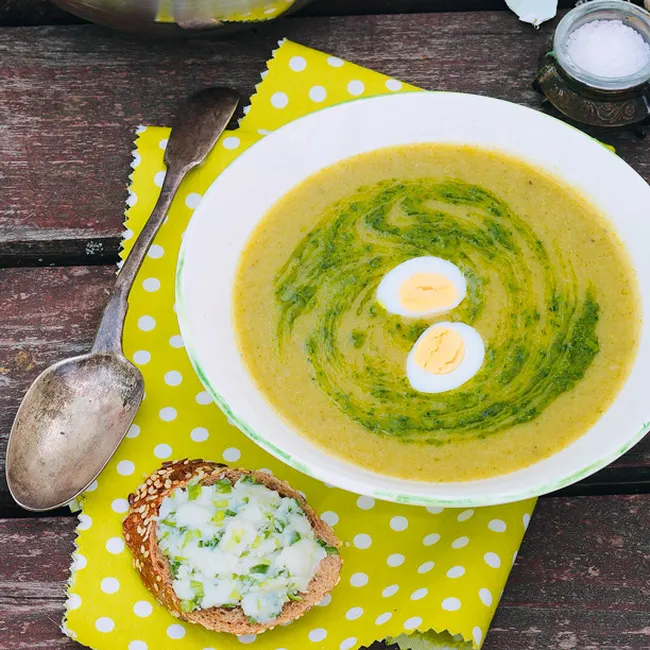 Суп-пюре со щавелем и песто из крапивы