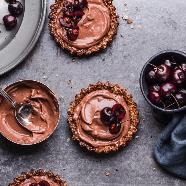 Тарталетки с вишней и шоколадным кремом