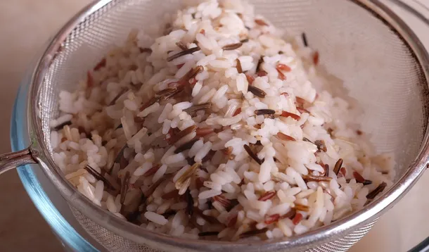 Духовку разогреть до 200 град. Приготовить начинку. Для этого отварить рис до полуготовности (около 20 минут), откинуть на сито.