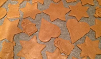 Взбить миксером размягченное сливочное масло и коричневый сахар. Добавить яйцо и жидкий мед, перемешать. Всыпать пряности и соду. Постепенно добавлять просеянную муку, пока тесто не перестанет липнуть к рукам. Тесто скатать в шар, обернуть пищевой пленкой и отправить в холодильник на час.