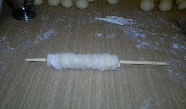 Скручиваем в рулет с помощью деревянной палочки. Я брала палочку для суши.
