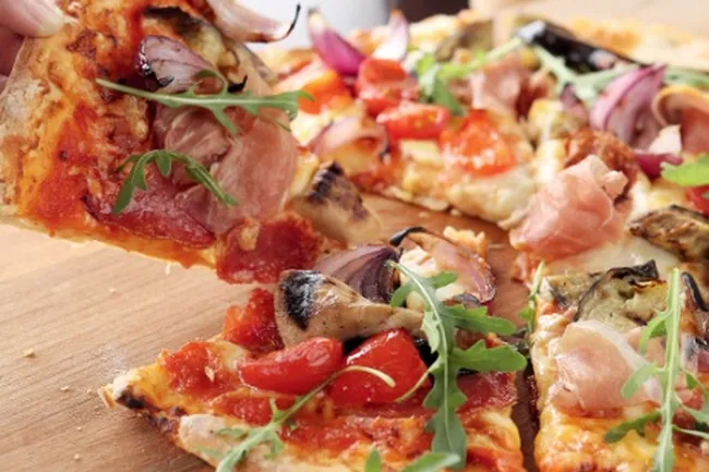 5.Если духовка с конвекцией, можете сразу выпекать 2 пиццы одновременно. Подавайте горячие пиццы с белыми грибами, посыпав рукколой.